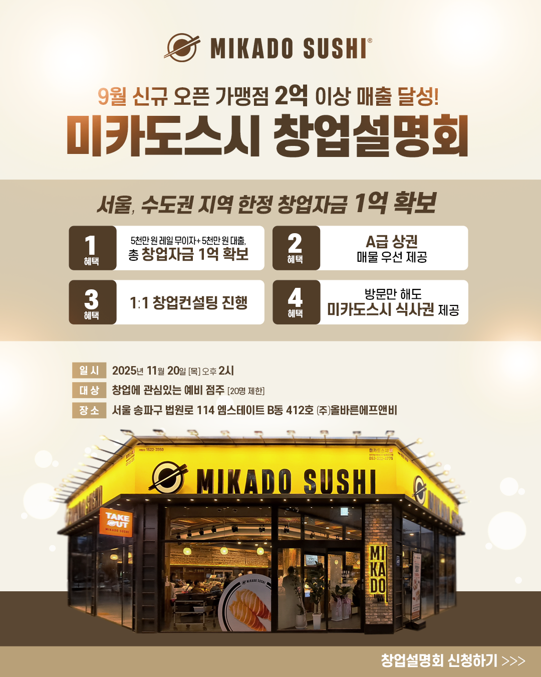 성공적인 창업의 첫걸음, 미카도스시와 함께하실 수 있습니다!